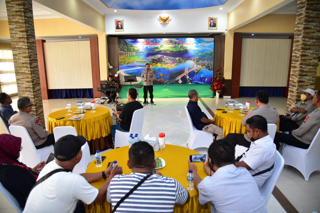 MahesaMediaCenter, Maluku – Kepala Kepolisian Daerah Maluku, Irjen Pol Drs. Lotharia Latif, SH., M.Hum, merayakan Hari Ulang Tahun (HUT) Bhayangkara ke-76 bersama wartawan.