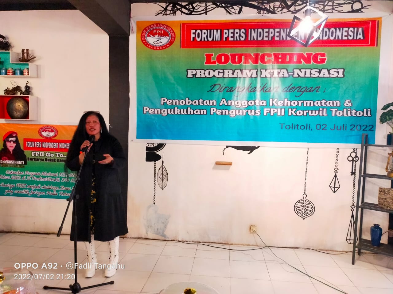 TOLI Toli media suara mabes.Ketua Presidium Forum Pers Independent Indonesia (FPII) Dra. Kasihhati, didampingi Sekretaris.Nasional Irfan Denny Pontoh,S.Sos dan Bendahara Presidium FPII Chily Babay, hadir dalam kegiatan nasional FPII, sabtu malam (2/7/2022 di Cafe Tamaki Kabupaten Tolitoli Provinsi Sulawesi Tengah.