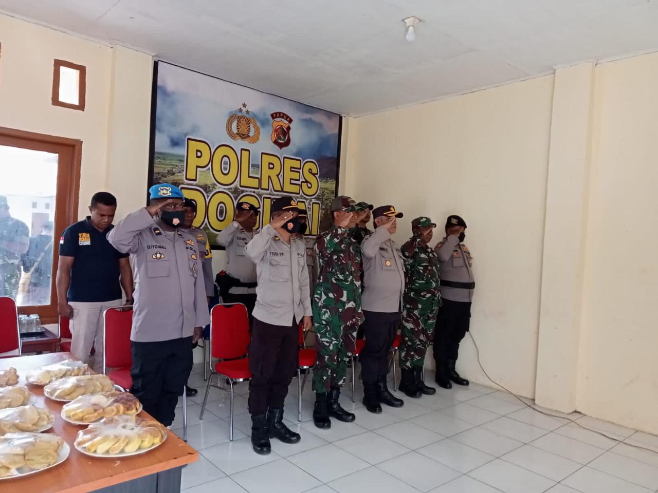 MahesaMediaCenter, Dogiyai – Polres Dogiyai, Papua, mengikuti peringatan HUT Bhayangkara ke-76 secara virtual, di Aula Polres Dogiyai pada Selasa (5/07/2022) Pagi.