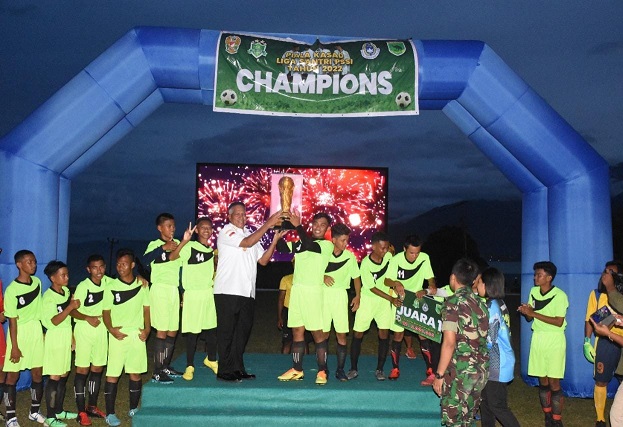 MahesaMediaCenter, Manokwari – Kompetisi Liga Santri Piala Kasad 2022 diwilayah Kodam XVIII/Kasuari kini berakhir. Pertandingan pamungkas pertemukan Ponpes Nurul Yaqin dan Ponpes Nurul Jannah yang tampil seru dan meriah, di Lapangan Makodam, Trikora, Arfai 1, Manokwari, Papua Barat, Rabu (6/7/2022).