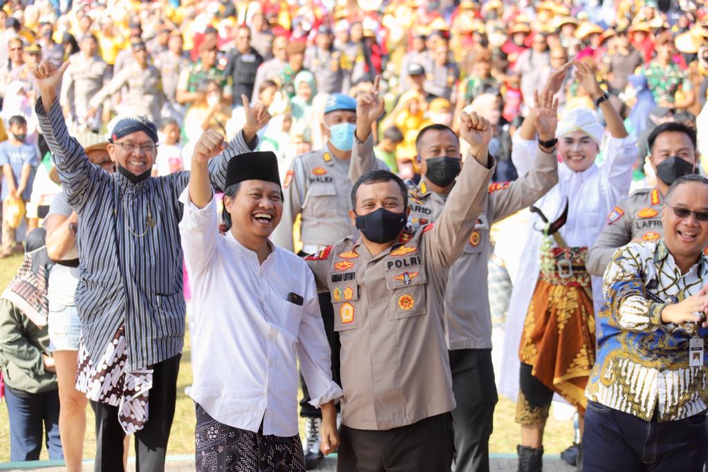 Kapolda Jateng Irjen Pol Ahmad Luthfi bersama Forkompinda Magelang dan tokoh masyarakat Magelang, KH Yusuf Chudhori (pengasuh ponpes API) yang turut hadir dalam kegiatan itu, turut mengikuti gerak tari yang melambangkan semangat gotong royong dan kebersamaan tersebut.
