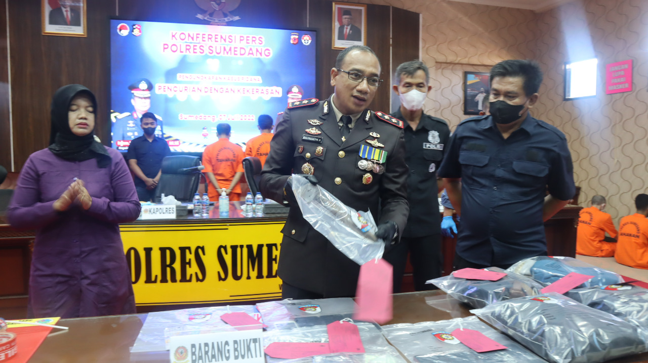 MahesaMediaCenter, Sumedang – Kepolisian Resor Sumedang gelar Press Release pengungkapan kasus tindak pidana pencurian dengan kekerasan pada Kamis (07/07/2022), yang bertempat Aula Tribrata Mapolres Sumedang.