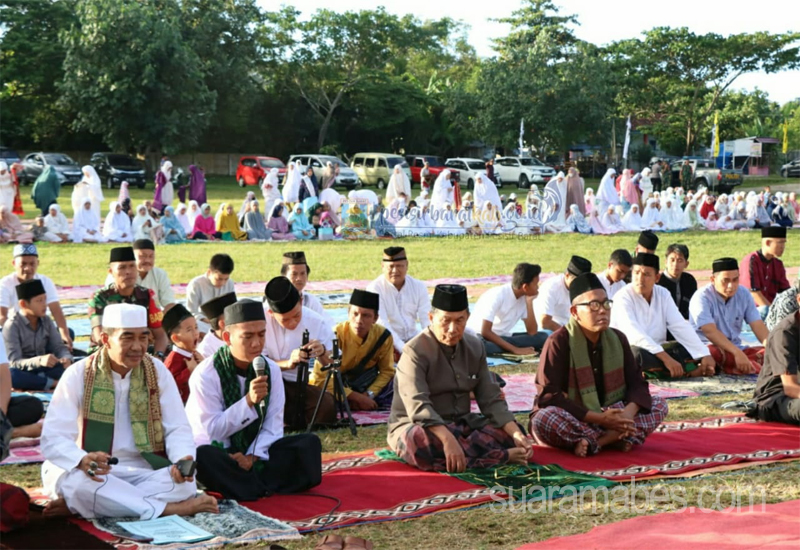 MahesaMediaCenter, Pesisir Barat – Bupati Pesisir Barat yang di Wakili Wakil Bupati Pesisir Barat A Zulqoini Syarif SH, Sholat Idul Adha 1443 H di Lapangan Labuhan jukung.Minggu (10/07/2022).