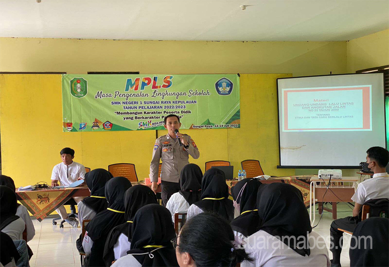 Kanit Binmas Polsek Sungai Raya Kepulauan Berikan Pembinaan dan Penyuluhan di SMKN 1 Sungai Raya Kepulauan