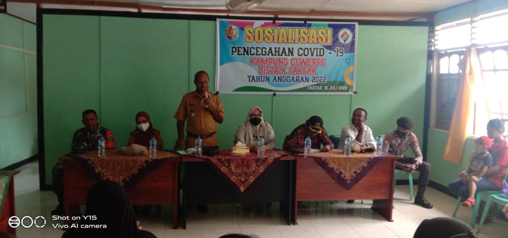 MahesaMediaCenter, Fakfak – Babinsa Koramil 1803-01/Fakfak Serka Sunarto mengikuti kegiatan Sosialisasi Pencegahan Covid -19 dan pembagian BLT Tahap II TA 2022 Bertempat di Kampung Gwerpe Distrik Fakfak, Kabupaten Fakfak, Papua Barat, Senin (18/07/2022).