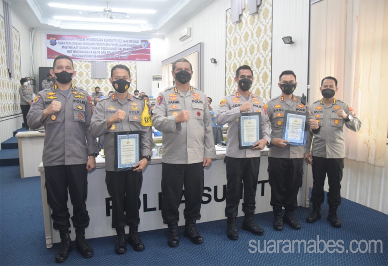 MahesaMediaCenter, Langkat –  Dalam rangka HUT Bhayangkara ke 76 Tahun 2022, Polres Langkat mendapatkan peringkat ke III dalam Percepatan Penanganan Dumas dari Irwasda Polda Sumut. Jum’at (15/07/22)