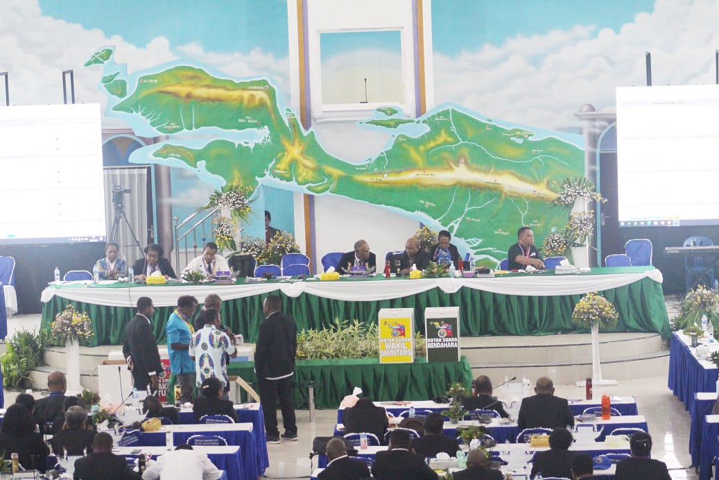 MahesaMediaCenter, Waropen – 368 orang peserta Sidang Sinode XVIII GKI di tanah Papua dari 70 klasis memberikan hak suaranya dalam masa pra pemilihan bakal calon Badan Pekerja Am Sinode GKI di Tanah Papua, periode 2022-2027 pada masa Sidang Paripurna V di gedung gereja GKI Betania Waren, Jumat (22/7/2022).