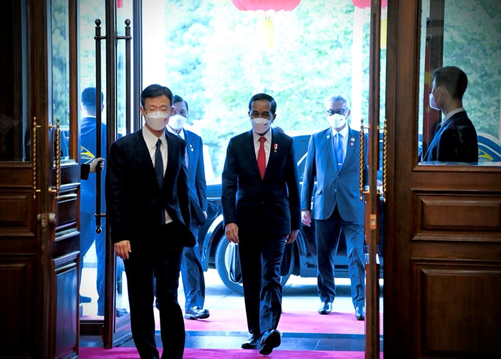 Saat tiba, Presiden Jokowi disambut oleh Premier Li dan langsung melaksanakan foto bersama. Setelahnya, Presiden Jokowi dan Premier Li beserta masing-masing delegasi bersama-sama menuju ruang pertemuan.