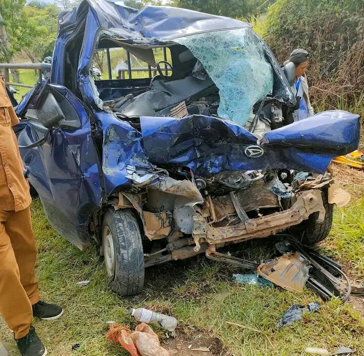 Dua orang korban tabrakan maut meninggal akibat kecelakaan lalu lintas antara mobil truk KB 9697 G dengan Mobil Calya KB 1099 KD serta mobil pickup Grand Max KB 8386 K.