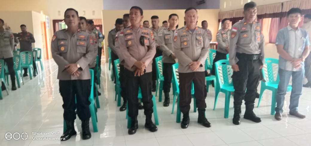Kapolres Kepulauan Talaud AKBP Dandung Putut Wibowo SIK. SH. MH. bersama seluruh Personil yang beragama Nasrani Melaksanakan Binrohtal dipandu oleh Pdt. Melsio Maengga S.Th.