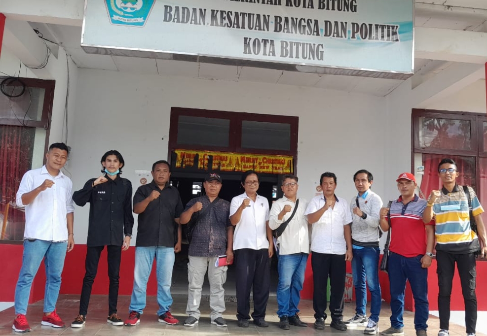 MahesaMediaCenter, Bitung – Dewan Pengurus Cabang Gabungan Wartawan Indonesia (DPC GWI) Bitung menyambangi Kantor Badan Kesatuan Bangsa dan Politik (Bakesbangpol) Kota Bitung di Jalan Stadion 2 Saudara, sebagai bentuk aktualisasi organisasi sekaligus melengkapi syarat pendaftaran, Rabu (27/07/2022).