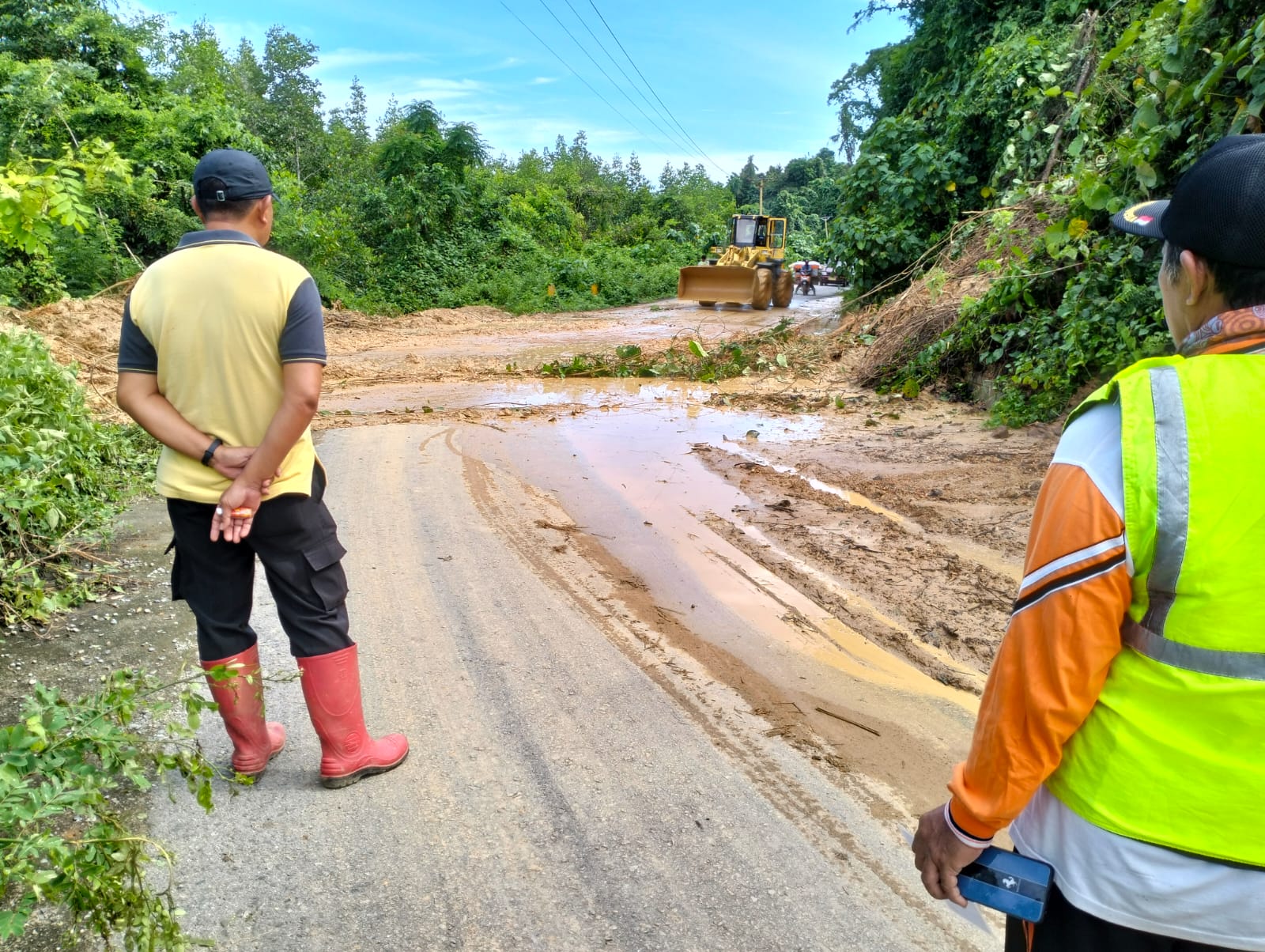 “mohon info ke warga yang akan menggunakan jalur jalan Lampasio basidindo, Untuk berhati hati dan jika perjalanan tidak begitu penting agar ditunda, Sampai akses jalan bisa normal kembali” Terangnya