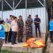Setelah rapat itu tampak Bripka Suprianus bersama Kepala desa Jahandung dan beberapa orang warga desa binaan bahu-membahu membangun rumah tersebut, Jumat (29/07/2022) pagi.