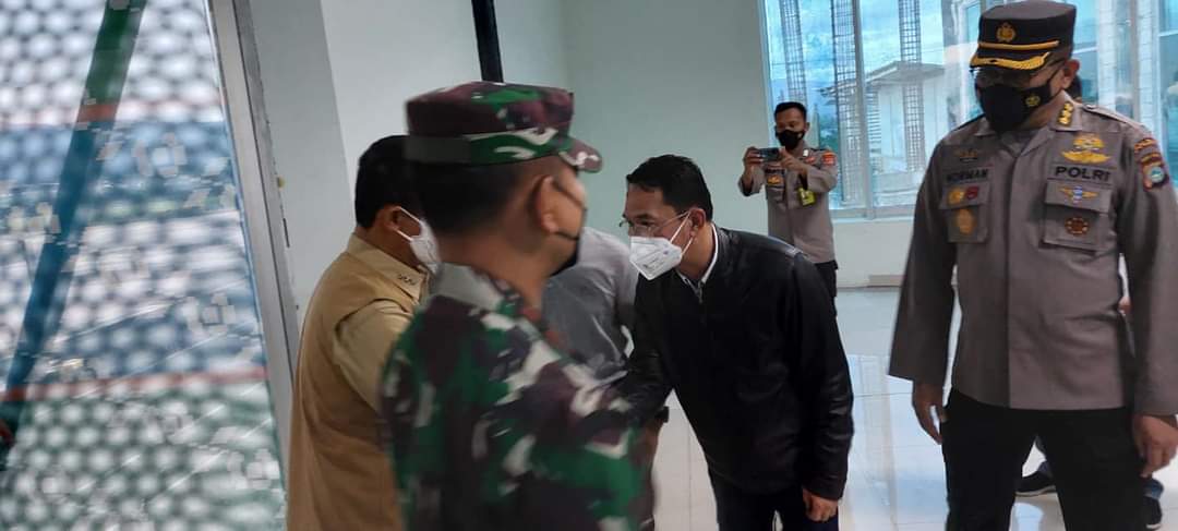 MahesaMediaCenter, Palu – Bupati Sigi Mohamad Irwan bersama Danrem 132/Tadulako, Sekretaris Daerah Provinsi Sulawesi Tengah, Wakil Bupati Parigi Moutong serta Forum Koordinasi Pimpinan Daerah Sulawesi Tengah menyambut langsung kedatangan Kepala Badan Nasional Penanggulangan Bencana (BNPB) Letjen TNI Suharyanto S.Sos., M.M beserta jajaran di Bandara SIS Aljufri Palu Minggu 31 Juli 2022, Sulawesi Tengah.
