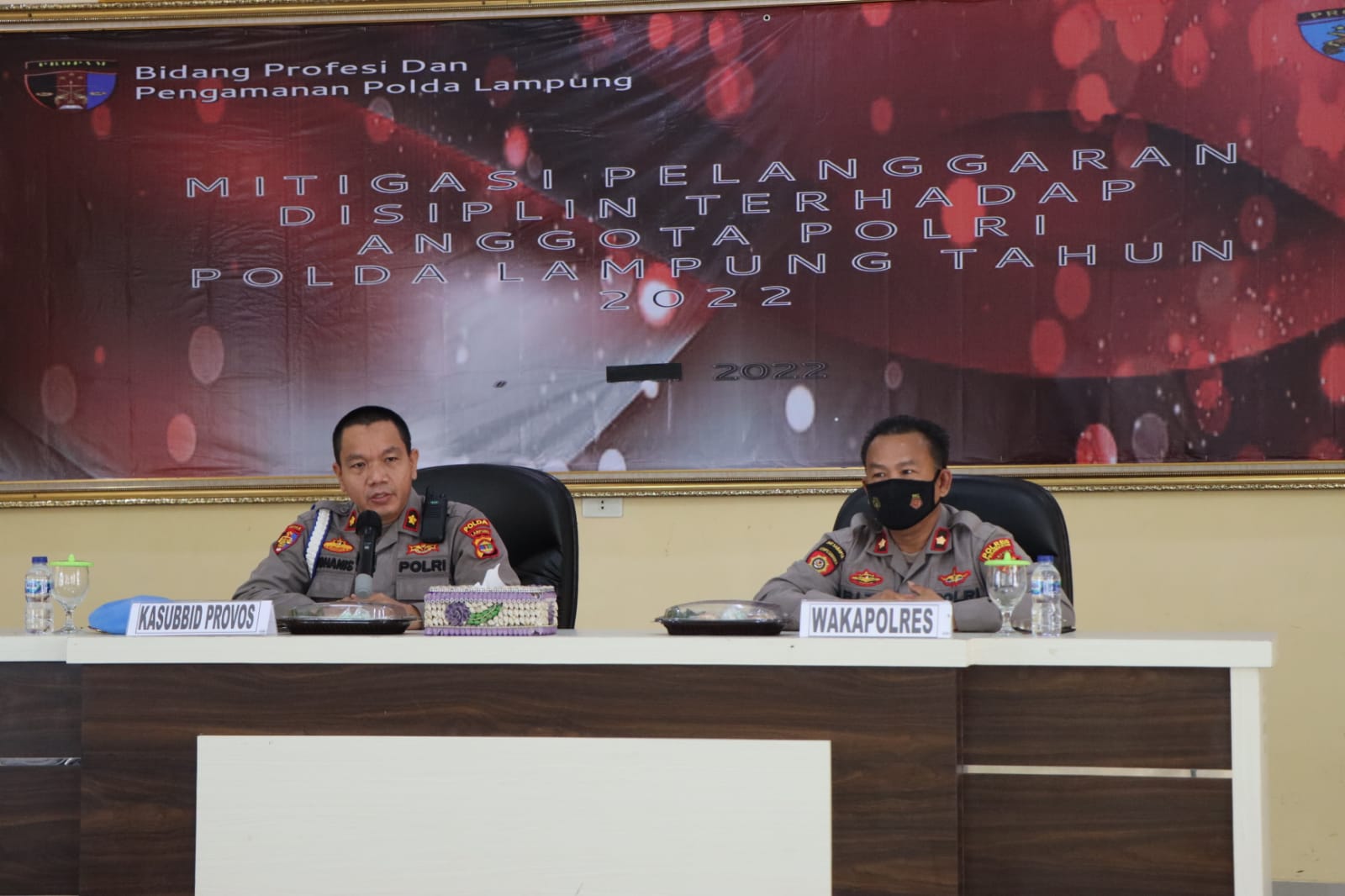 Kegiatan tersebut dilaksanakan oleh Kabid Propam Polda Lampung Kombes Pol Muhammad Syarhan, S.Ik, M.H, yang diwakili oleh Kasubbid Provost Propam Kompol Yohanis, S.H., M.H didampingi Kaur Gakkum Subbid Provost AKP Syahdan, Ps. Kanit Riksa 2 Subbid Provost Iptu A. Nusa Putra dan Tim Rombongan Bid Propam Polda Lampung, sekaligus sebagai Narasumber dan dihadiri oleh Wakapolres Pesawaran Kompol Muhammad Riza T, S.H., M.H., serta para Pejabat Utama (PJU), Para Kapolsek Jajaran dan Personil Polres Pesawaran.