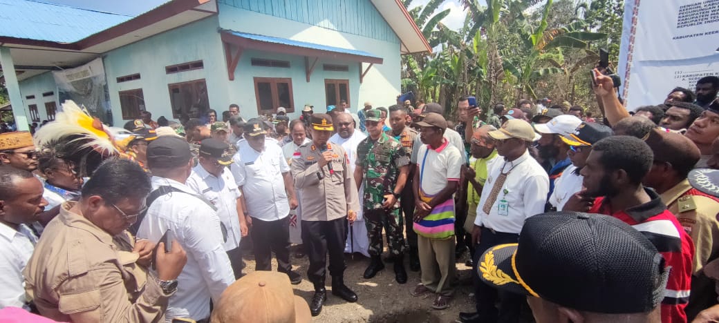 Kapolres Keerom AKBP Christian Aer, S.H.,S.I.K menyampaikan bahwa Peletakan batu pertama ini merupakan Program pemerintah Daerah serta sebagai awal dimulainya pembangunan Kantor Bupati yang baru di Distrik Waris.