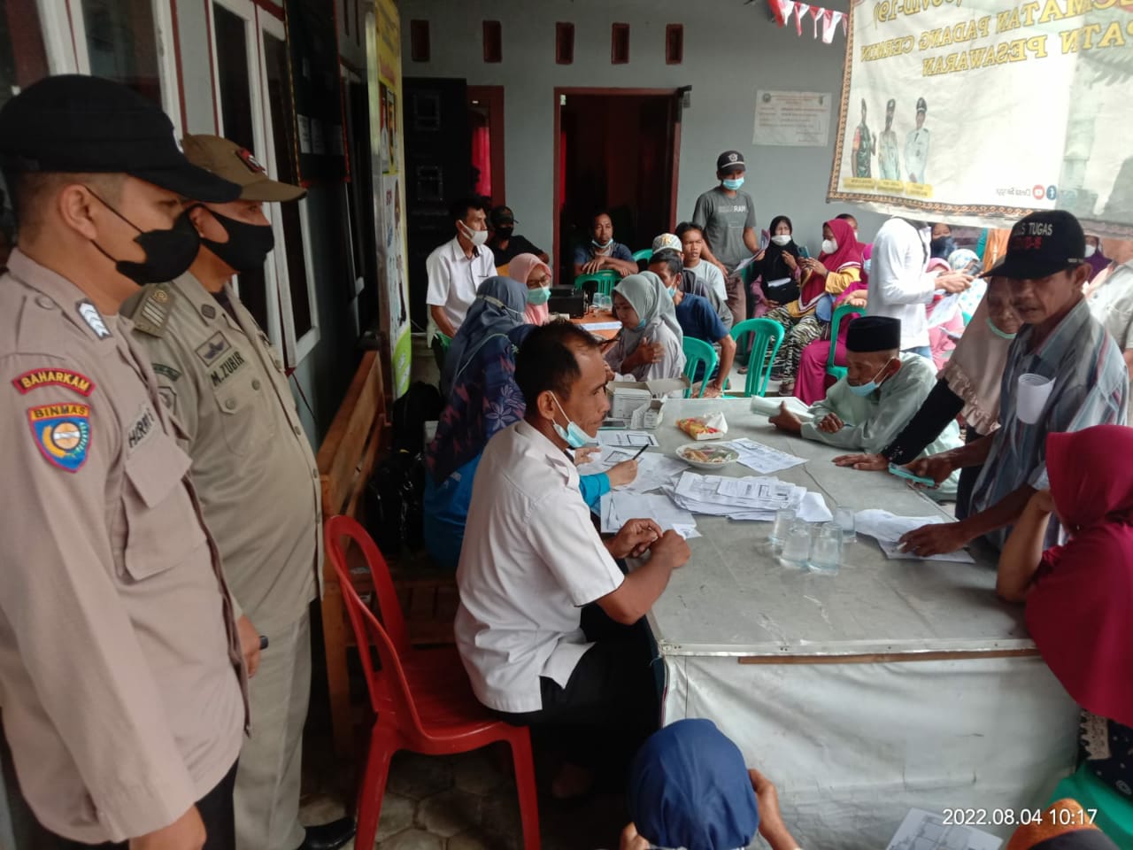 Pada penyaluran Bantuan Langsung Tunai (BLT) kali ini PJ dan aparatur desa sanggi bersama petugas Polres Pesawaran dan PKM Padang cermin menggelar kegiatan Vaksin untuk KPM dan Umum berlangsung di balai desa sanggi kecamatan padang cermin kabupaten pesawaran kamis 04/08/2022.