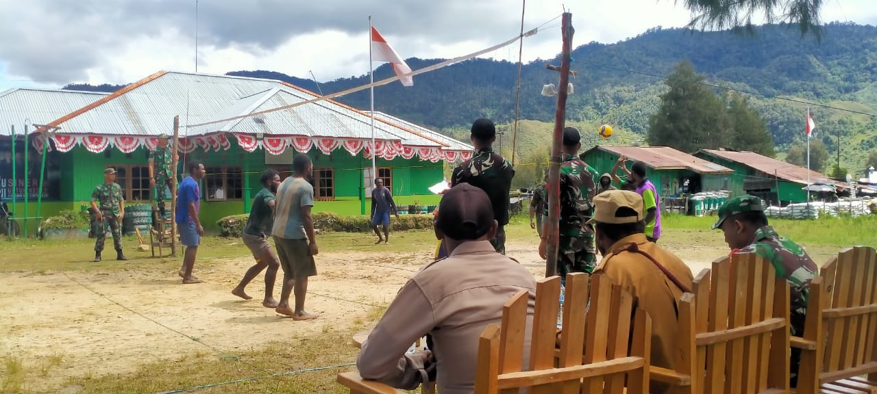 MahesaMediaCenter, Aradide – Dalam rangka memeriahkan HUT Proklamasi ke 77, Koramil 1703-04/Aradide mengadakan pertandingan bola voli “Danramil Cup” yang berlangsung dilapangan halaman Makoramil, Senin (8/8/2022)