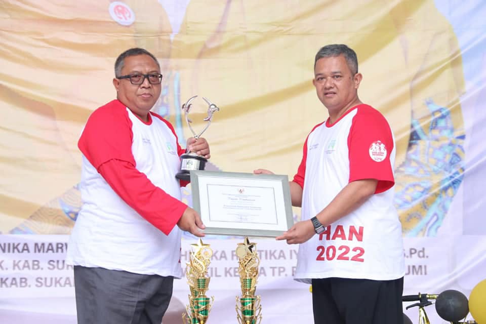 Bupati Sukabumi pun memberikan sejumlah penghargaan kepada berbagai pihak diantaranya pemberian bantuan kursi roda kepada anak yang membutuhkan.