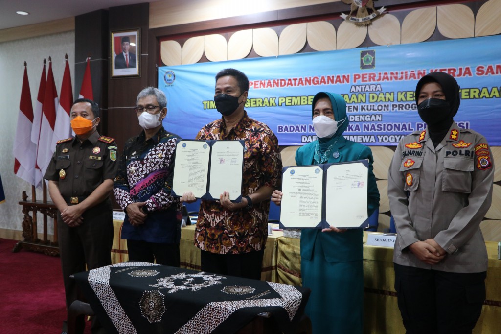 MahesaMediaCenter, Yogyakarta – Menekan penyalahgunaan Narkoba, Tim penggerak (TP) PKK Kabupaten Kulon Progo besama Badan Narkotika Nasional Propinsi (BNNP) DIY tandatangani Memorandum of Understanding (MoU) untuk bersama -sama memerangi narkoba .Hal tersebut sebagai bentuk kerjasama guna memproteksi keluarga dari ancaman Narkoba. Berlangsung di ruang Sermo, kompleks Pemkab Kulon Progo. Kamis (11/8)