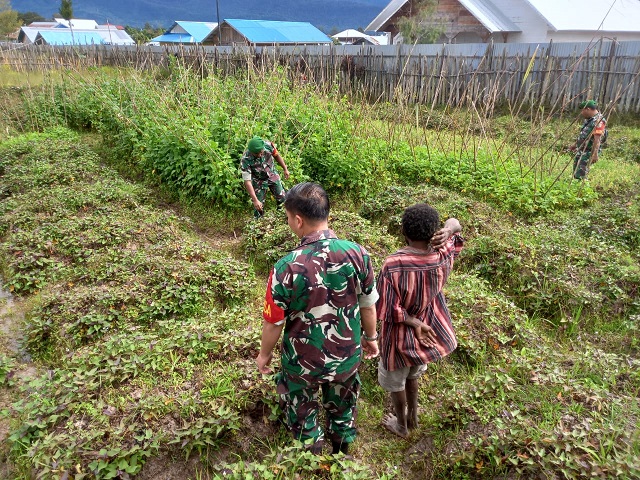 MahesaMediaCenter, Tigi – Babinsa Koramil 1703-02/Tigi, dipimpin Serka Imbifo melaksanakan komunikasi sosial (Komsos) sambil memberikan pendampingan budidaya sayuran kepada petani di Kampung Atouda, Distrik Tigi, Kabupaten Deiyai, Sabtu (13/08/2022).