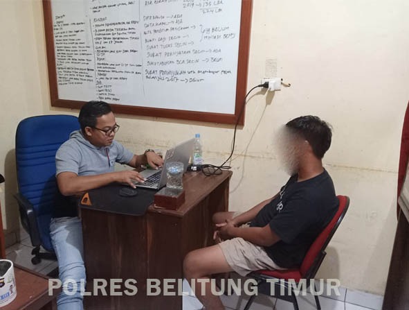 Setelah menerima laporan tim langsung melakukan serangkaian penyelidikan dan pemeriksaan saksi saksi lalu melakukan pengembangan untuk memburu pelaku. Tim akhirnya menemukan dan menangkap pelaku di Dusun Jaya RT. 18 Desa Lenggang Kec. Gantung Kab. Beltim, pada Sabtu (07/08/2022) malam, sekitar pukul 20.30 Wib.
