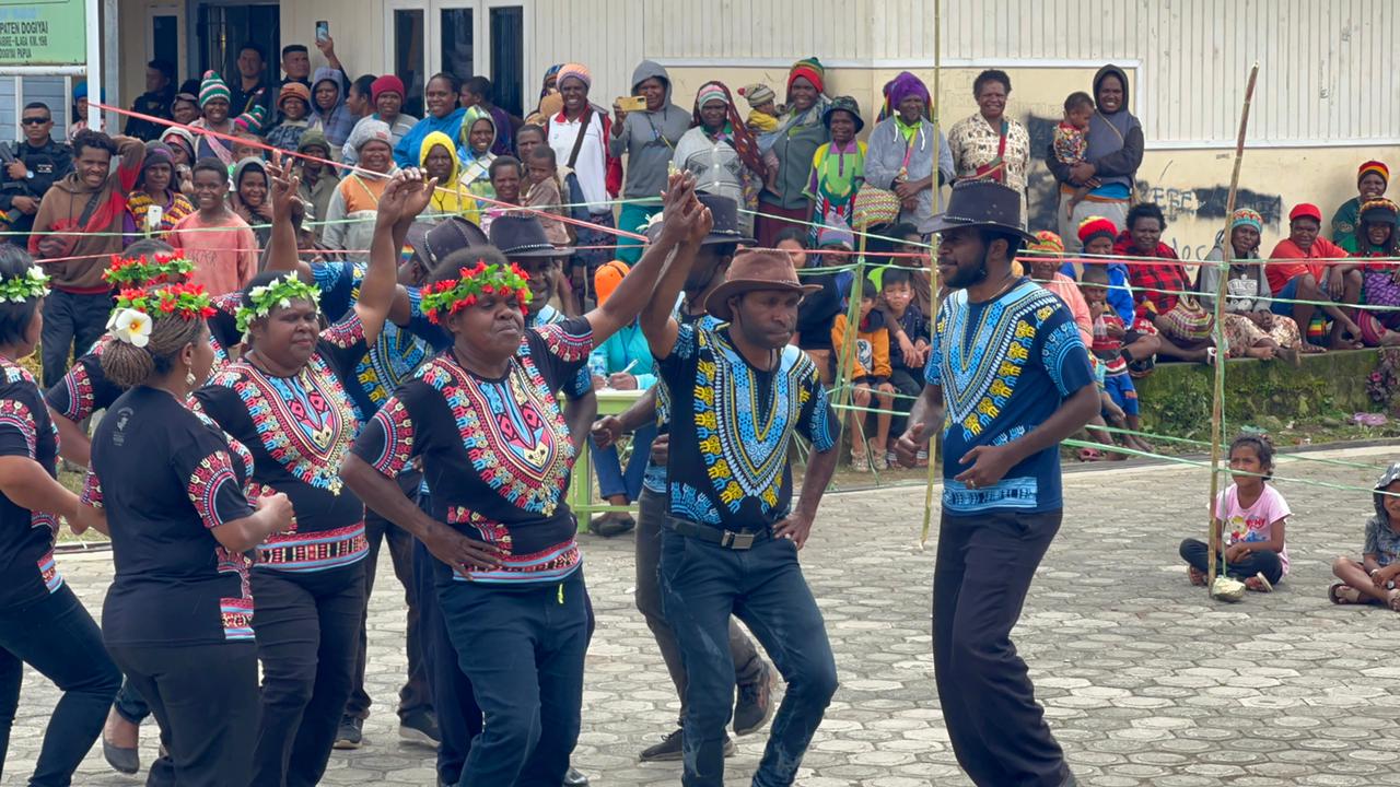 MahesaMediaCenter, Dogiyai – Kabag Ops Polres Dogiyai AKP Michael L Ayomi membuka sekaligus turut serta dalan pelaksanaan lomba Yospan dalan rangka menyambut HUT RI ke 77 yang bertempat di Kantor Bupati Kab. Dogiyai.