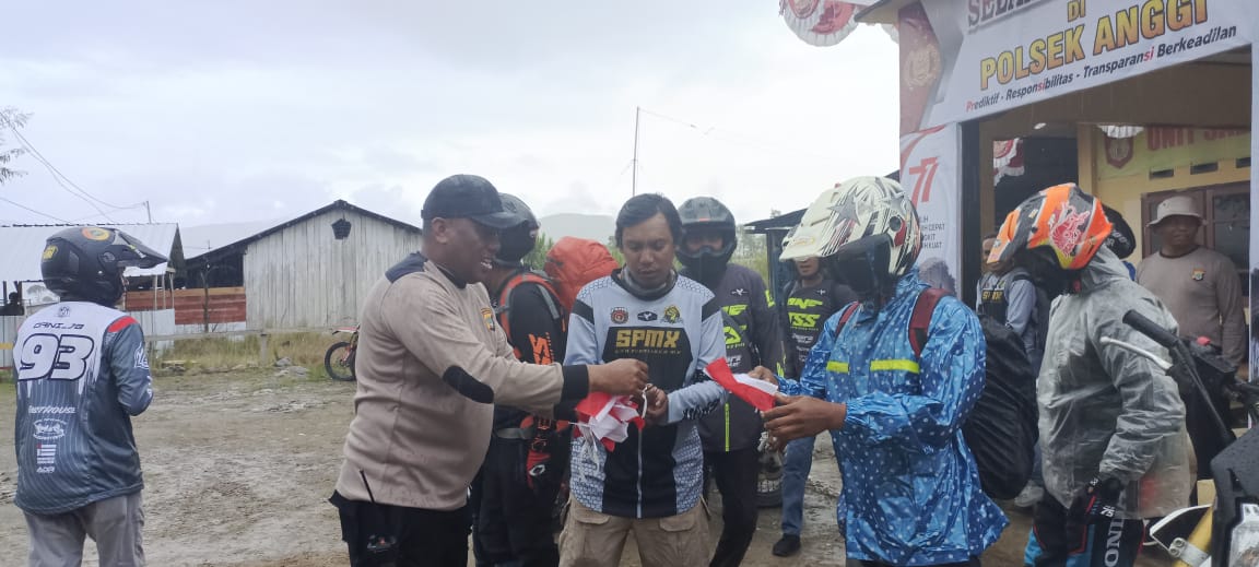 Sambut HUT RI Ke-77, Kapolres Pegunungan Arfak Bersama PJU Bagikan Bendera Merah Putih Kepada Comunitas Motor trail