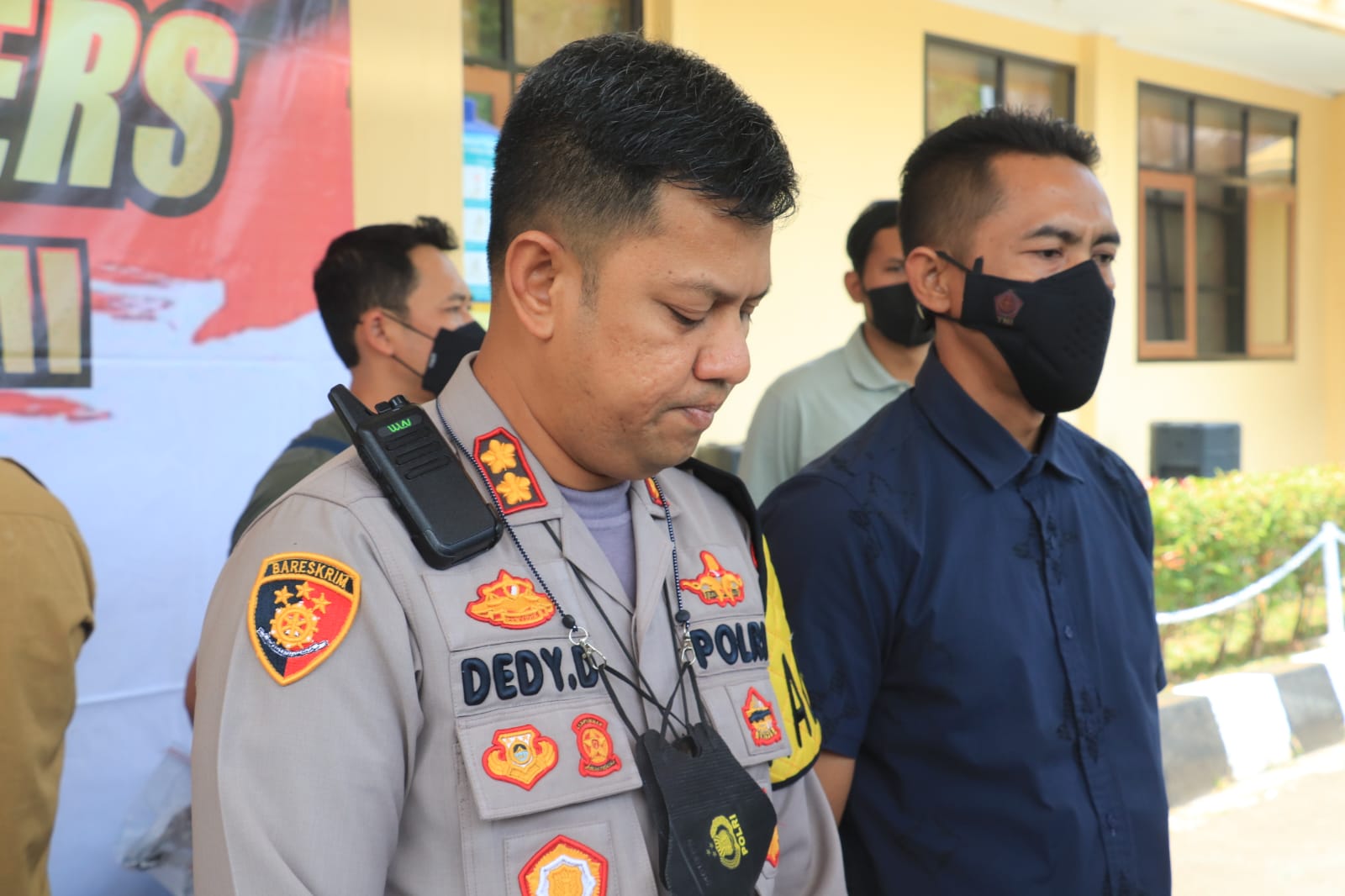 “Dua orang itu ditangkap di tempat yang berbeda, pertama adalah seorang kepala desa (AA) ditangkap di kantor desanya, di ruang kerjanya sendiri, tersangka tidak bersama teman-temannya,” jelas Kapolres Sukabumi AKBP Dedy Darmawansyah Nawirputra, Selasa (20/08/2022) dalam konferensi pers di Mapolres Sukabumi.