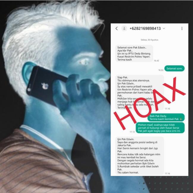“itu hoax, dilakukan oleh oknum yang tidak bertanggung jawab demi kepentingan pribadi, apa lagi minta ke pengusaha-pengusaha untuk uang tiket pulang jalan dinas ke serui”.ungkap Kasat Reskrim. Rabu (31/8/2022).