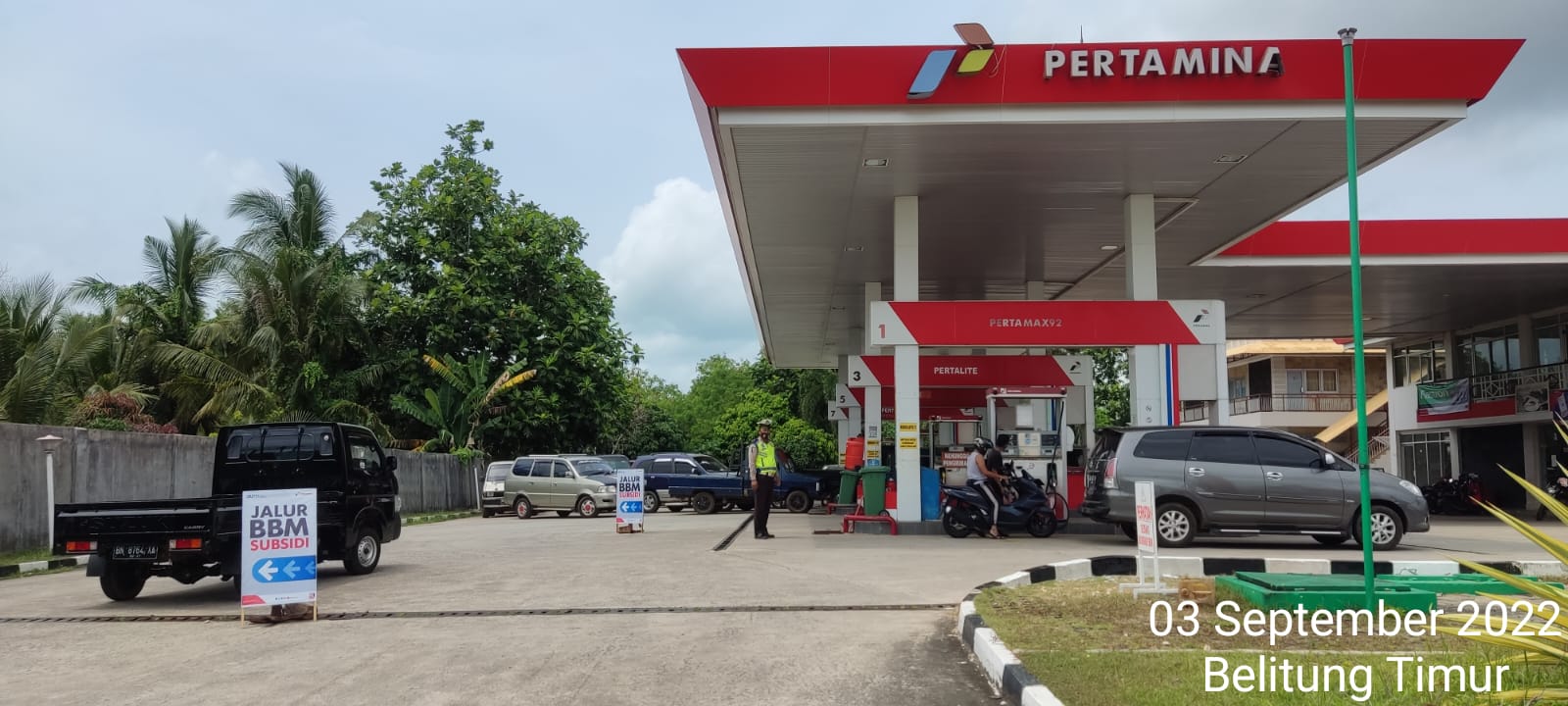 Pengamanan yang dilakukan oleh Personel Polres Belitung Timur dan Polsek Jajaran di SPBU, untuk memastikan ketersediaan BBM, dan menjaga situasi tetap kondusif, aman serta terkendali menjelang dan setelah diumumkannya kenaikan harga BBM oleh pemerintah. Harga terbaru BBM mulai diberlakukan sekira pukul 14.30 WIB.