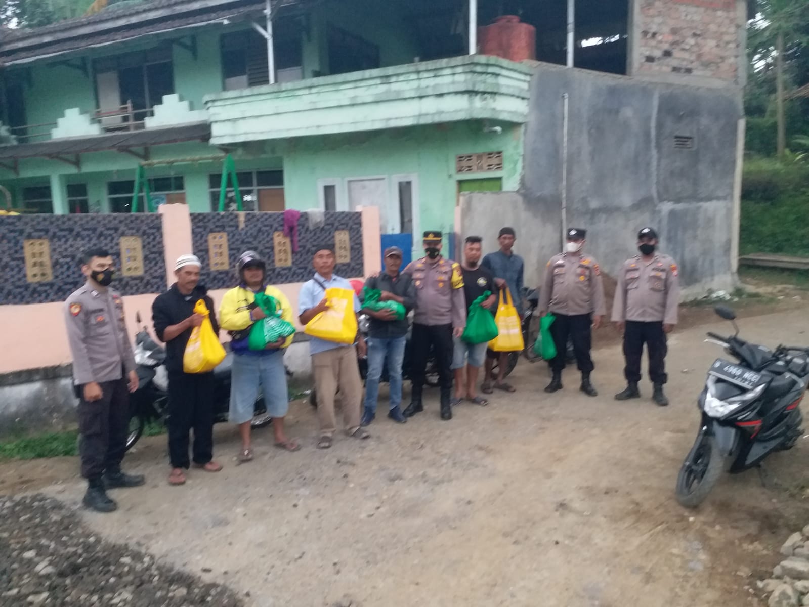Pembagian bansos dilakukan langsung oleh Kapolsek Nyalindung AKP Dandan Gaos bersama anggota yang langsung menemui para sopir angkutan dan pengemudi ojek.