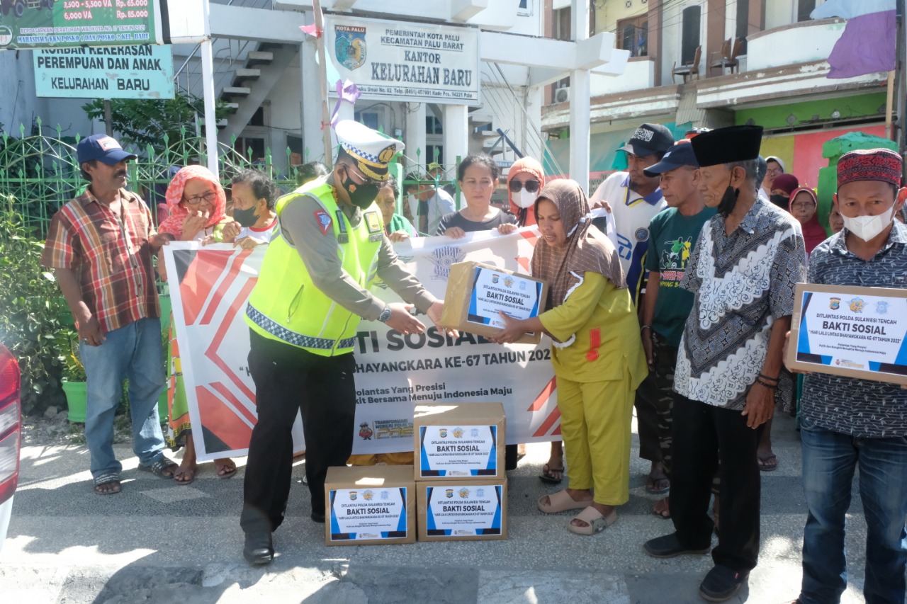 Sambut Hari Lalu Lintas Bhayangkara ke 67, Dit Lantas Polda Sulteng bagikan ribuan paket sembako