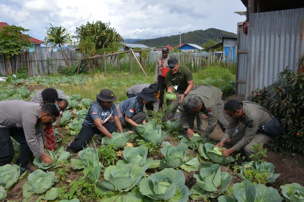 MahesaMediaCenter, Jayapura – Wakaops 1 Kombes Pol Bambang Widjanarko Baiin, S.I.K, M.Si bersama Binmas Noken Polri yang didampingi Kasatgas Preventif Kombes Pol Joni Afrizal Syarifuddin, S.I.K, S.H, M.H dan Kasatgas Siber Bambang Widyatmoko, S.H, M.M lakukan panen pada kebun sayur milik ibu Y. Iyowau melalui program Kasuari yang bertempat di Kampung Tokapo Distrik Kamuu Kab. Dogiyai, Sabtu (10/9).