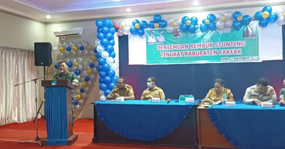 MahesaMediaCenter, Fakfak – Komandan Kodim (Dandim) 1803/Fakfak Letkol Inf Tri Handoko Wicaksono menghadiri Acara Pertemuan Rembuk Stunting Tingkat Kabupaten Fakfak, Bertempat di Aula Serbaguna RRI Jalan Kapten Tedean Kel. Fakfak Utara, Distrik Fakfak, Kabupaten Fakfak, Papua Barat Senin (12/09/2022).