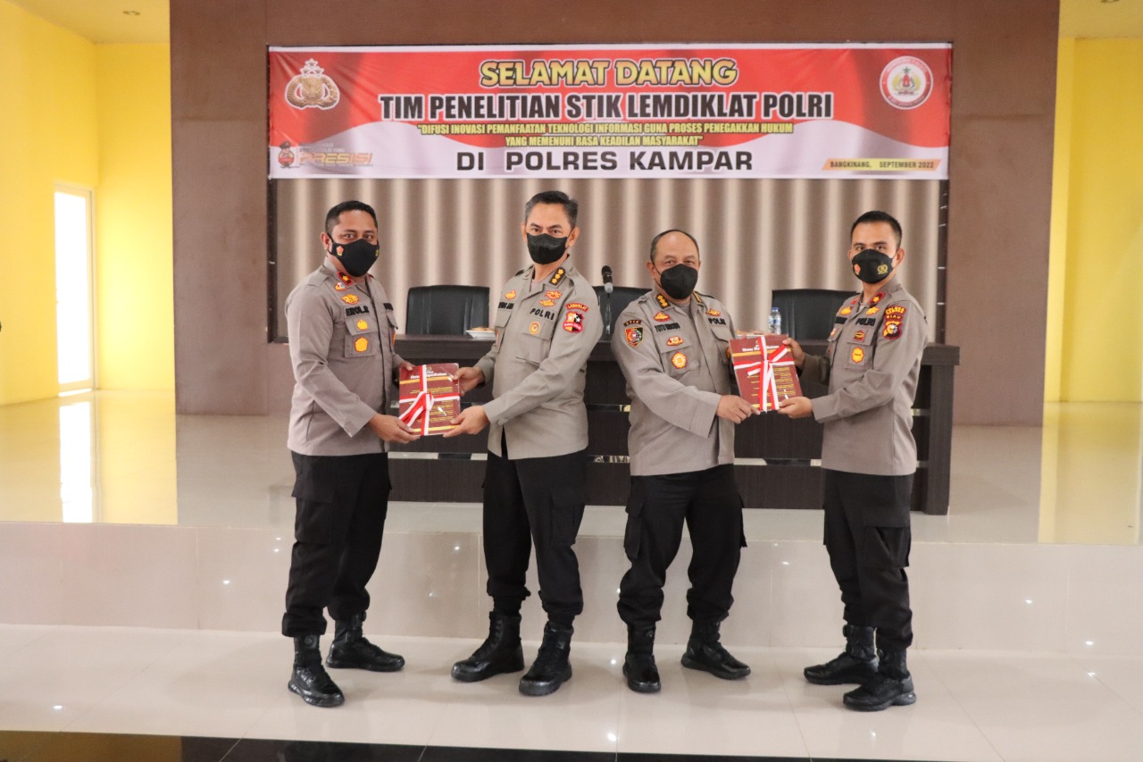 MahesaMediaCenter, Kampar – Lemdiklat Polri laksanakan kegiatan penelitian STIK yang mengusung judul Difusi Inovasi Pemanfaatan Teknologi Informasi Guna Proses Penegakan Hukum yang memenuhi rasa keadilan masyarakat, Kamis, (15/9/22), sekira pukul 09.30 WIB, di aula Sanika Satyawada Polres Kampar.