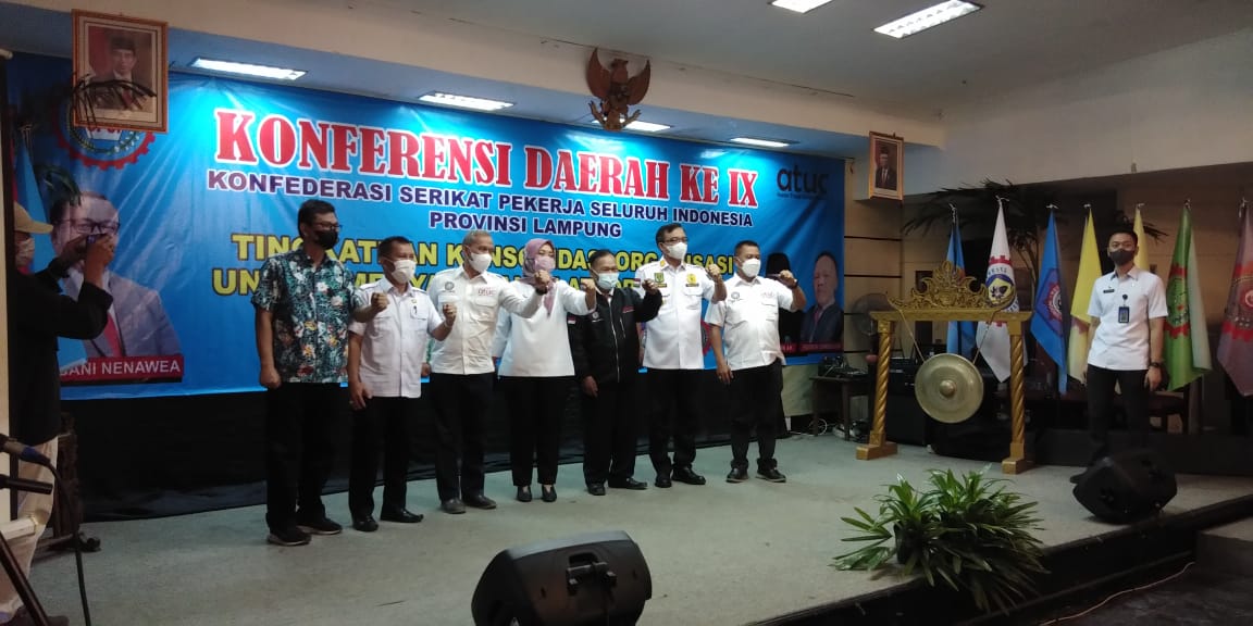 MahesaMediaCenter, Bandar Lampung – Konfederasi Serikat Pekerja Seluruh Indonesia (KSPSI) Provinsi Lampung melakukan Konfrensi Daerah Ke-XI ‘dengan tema tingkatkan konsolidasi organisasi untuk menyatukan Platform pekerja’ di Hotel Sahid, Kamis (15/09/2022).