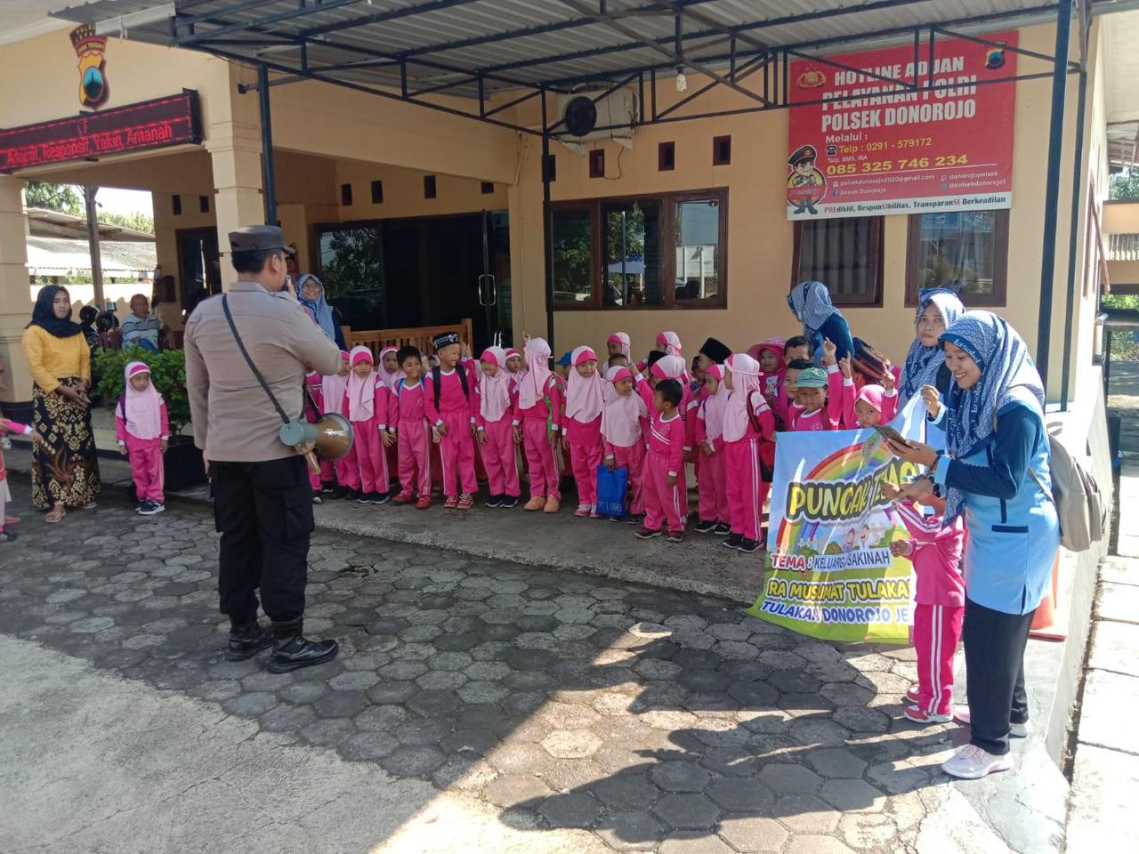 MahesaMediaCenter, Jepara – Polsek Donorojo Polres Jepara Polda Jateng mendapat kunjungan dari siswa RA Muslimat Desa Tulakan Kecamatan Donorojo Kabupaten Jepara, Kamis (15/09/2022) Pagi.