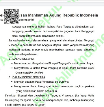 “Alhamdulillah, sudah diterima eksepsi para tergugat. Berarti ini tidak dilanjutkan,” kata Elly dalam keterangan tertulisnya