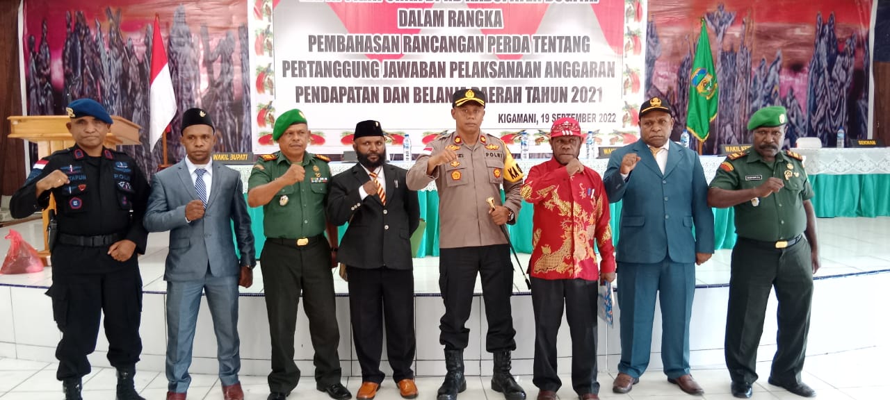 Kapolres Dogiyai Kompol Samuel D Tatiratu S.I.K didampingi Danpos Brimob Moanemani dan Danramil Moanemani serta Danramil Mapia Menyampaikan Sitkamtibmas di Kabupaten Dogiyai