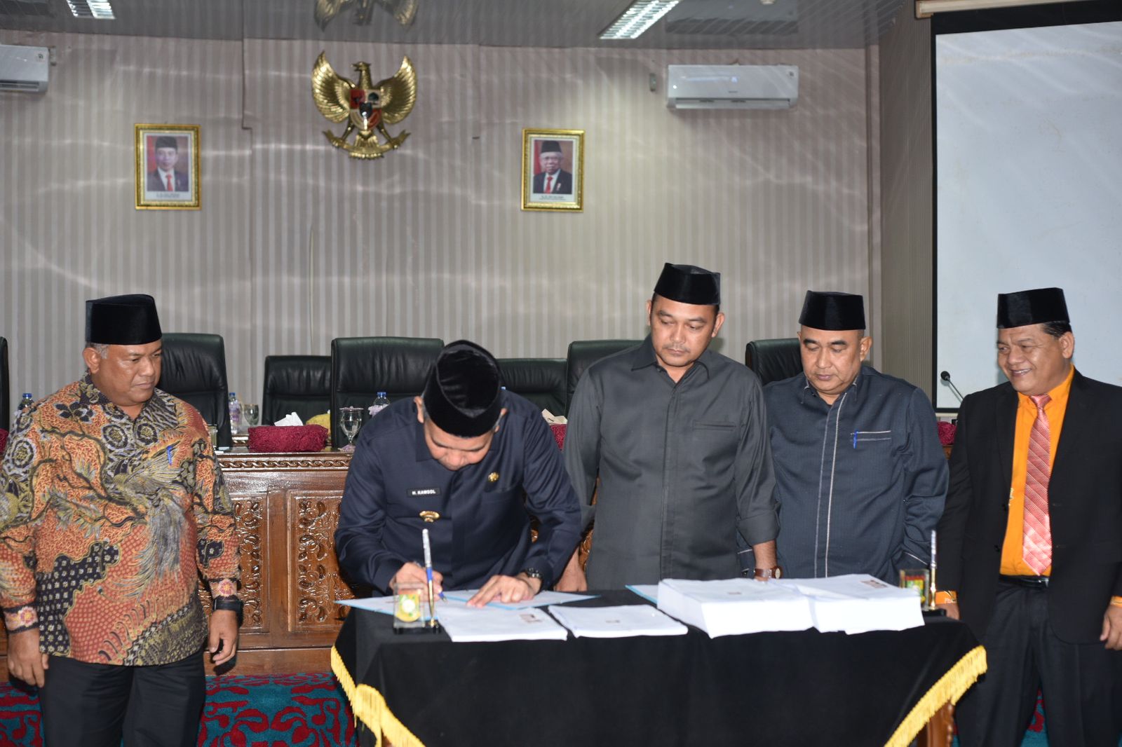Hal tersebut ditandai dengan penandatanganan Nota Kesepakatan antara Pemerintah Kabupaten bersama DPRD Kabupaten Kampar di ruang paripurna DPRD Kabupaten Kampar pada Kamis (22/9) penandatangan dilakukan langsung Pj. Bupati Kampar Dr. H. Kamsol, MM dan Ketua DPRD Kampar Muhammad Faisal, ST dan Pimpinan DPRD Kampar Fahmil, SE, Tony Hidayat dan disaksikan oleh Sekretaris Daerah Kabupaten Kampar Drs Yusri, M.Si dan Sekretaris DPRD Kampar Ramlah, SE dan Anggota DPRD Kampar, Kepala OPD di lingkungan Pemkab Kampar, dan Forkopimda yang mewakili.