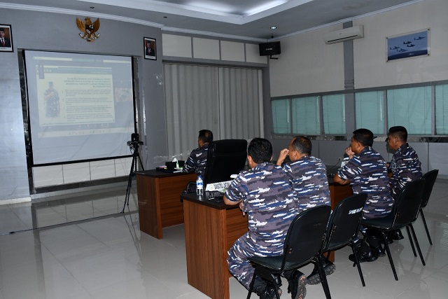 MahesaMediaCenter, Manado – Komandan Pangkalan Utama TNI AL (Danlantamal) VIII Manado Laksamana Pertama TNI Nouldy J. Tangka mengikuti exit briefing Panglima Komando Armada (Pangkoarmada) RI melalui video conference (Vicon) di Ruang Serbaguna, Markas Komando Lantamal VIII, Jl. Yos Sudarso No.1 Kairagi Weru, Paal Dua, Manado. Jumat (23/9/2022)