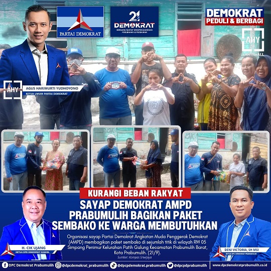 Ladi Yansah Ketua AMPD Kota Prabumulih melalui Sekretaris M.Sitho SE Mengatakan kegiatan ini merupakan arahan ketua Demokrat Prabumulih untuk seluruh kader dan sayap partai agar melakukan kegiatan sosial khususnya di bulan bakti sosial Demokrat,Kegiatan tersebut dilakukan di RW 05/RT 01 Simpang Penimur Kelurahan Patih Galung Kecamatan Prabumulih Barat,Kota Prabumulih.