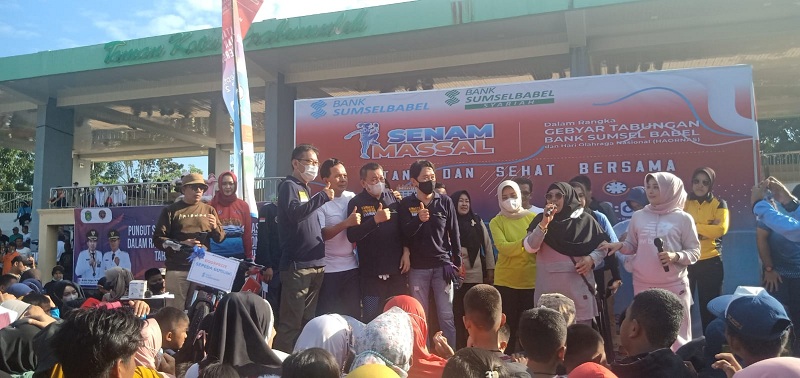“Senam massal ini merupakan rangkaian kegiatan Gebyar Tabungan Pesirah, dan Hari Olahraga Nasional tanggal 9 September kemarin, ini dilaksanakan juga oleh seluruh cabang Bank Sumsel Babel,” terang Pimpinan Cabang Bank Sumsel yang baru saja bertugas di Prabumulih.