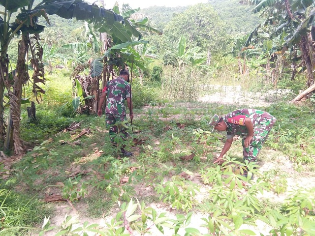 Untuk itu, guna meningkatkan hasil panen, dua anggota Koramil 10/Karimunjawa melaksanakan pengecekan dan perawatan tanaman singkong atau ubi kayu di lahan milik warga di Desa Karimunjawa, Kabupaten Jepara, Jawa Tengah. Selasa, (27/9/2022).