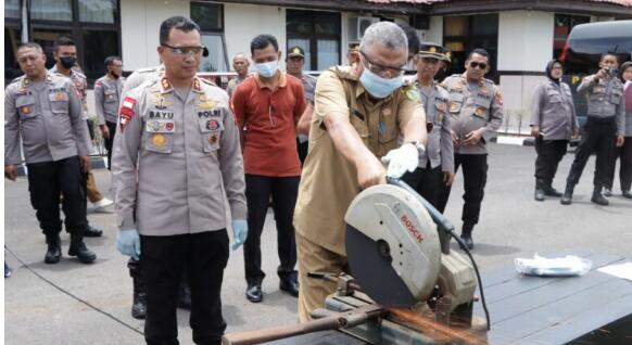Pemusnahan Senpi Rakitan dan Organik ini dilakukan dengan cara di gerinda di depan Mapolres Bengkayang, Selasa (27/09/22).