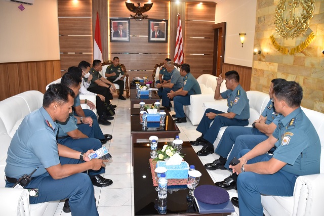Tim Kemenkopulhukan RI yang terdiri dari Asisten Deputi Koordinasi Doktrin dan Strategi Pertahanan Brigjen TNI Frengky E. Riupassa didampingi Kepala Bidang Doktrin Pertahanan Kolonel Inf Rusman dan Analis Polhukam Domaeld Putra diterima Wakil Komandan Lantamal VIII Kolonel Marinir Mikaryo Widodo mewakili Komandan Lantamal VIII Laksamana Pertama TNI Nouldy J. Tangka.