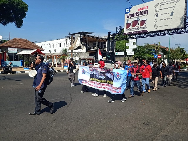 Dalam aksinya, wartawan Jepara pun membentang spanduk berisi berbagai tuntutan diantaranya, turunkan dua ASN dari Karawang dan segera diproses hukum sesuai perbuatan yang mereka lakukan pada wartawan Gusti.