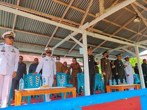 Adapun yang hadir dalam upacara tersebut yaitu Drs. Mokthar Arunde Parapaga ( Wakil Bupati Kab. Kepl. Talaud ) ; Letkol Laut (P) Glory Syaranamual, S.E., M.Tr Opsla ( Danlanal Melonguane ) ;AKBP Dandung Putut Wibowo, S.I.K., S.H., M.H.( Kapolres Kepl. Talaud ) ;Letkol Inf. Agus Ariyanto ( Dandim 1312/Talaud ) ; Bambang Supriyanto, S.H., M.H. ( Kajari Kab. Kepl. Talaud ) ;IPDA Glen C Damar, S.Th. SH ( Kapolsek Melonguane ) Para Pejabat Esalon II, III, IV Pemda Kab. Kepl. Talaud.
