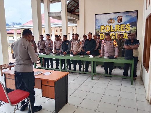 ” Kapolres juga menyampaikan kepada seluruh personil Polres Dogiyai,BKO Brimob Yon C dan juga Satgas Preventif yang mana biar sekalipun kita bertugas di mana saja itu sudah menjadi hal yang biasa bagi kita sebagai setiap. Insan Bhayangkara tetapi yang paling penting adalah jangan melupakan setiap kebaikan Tuhan dalam kehidupan kita semoatkan Waktu untuk Berdoa Minta tuntunan dari pada Roh Kudus agar selalu membimbing kita di setiap langkah perjalanan hidup kita ini ” Ujar Kapolres
